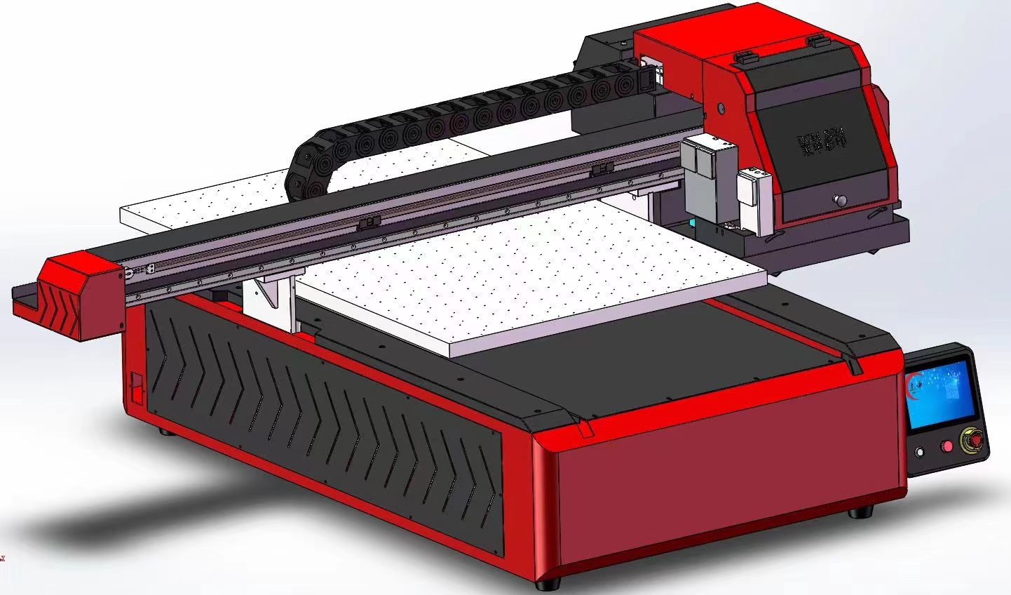 ফ্ল্যাট প্যানেল প্রিন্টিং সিস্টেম কালার হোয়াইট আউট, বিভিন্ন রঙের হোয়াইট আউট, সাদা কালির নীচে, কভার, গ্লস ইত্যাদি সমর্থন করে, ব্যাক প্রিন্টিং, অ্যান্টি-ইন্টারফারেন্স এবং স্থিতিশীলতা খুবই ভালো। এটি এক ধরনের প্লেট-মুক্ত প্যানক্রোমাটিক ডিজিটাল প্রিন্টিং যা কোনো উপাদানের দ্বারা সীমাবদ্ধ নয়। এটি উপাদানের পৃষ্ঠের সাথে যোগাযোগ করে না। এটি প্রিন্টিংয়ের পরিসরকে বিস্তৃত করে এবং কাঁচ, সিরামিক টাইল, ধাতু, চামড়া, কাঠ এবং প্লাস্টিকের মতো শত শত উপকরণ মুদ্রণ করতে পারে। প্রধানত বিজ্ঞাপন শিল্প, বিল্ডিং ম্যাটেরিয়াল শিল্প, ইলেকট্রনিক পণ্য শিল্প, চামড়া শিল্প, কাঠ শিল্প, কারুশিল্প শিল্প, স্টেশনারি শিল্প, খেলনা শিল্প ইত্যাদিতে ব্যবহৃত হয়।
