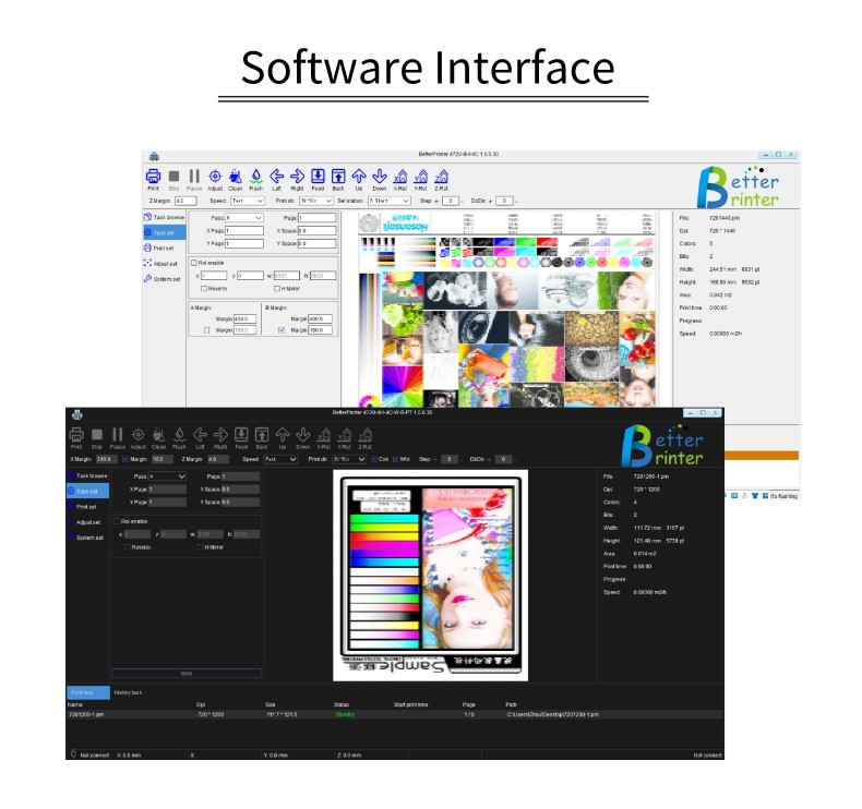 | আরআইপি সফটওয়্যার | মূলধারার আরআইপি সফটওয়্যার যেমন মেইনটপ, ফটোপ্রিন্ট, আল্ট্রাপ্রিন্ট, ওনিক্স, ওয়াসাচ ইত্যাদি। | ফাংশন সমর্থন | আরআইপি ফাংশন, মাল্টিপল প্রিন্টিং, মাল্টিপল অর্ডার সাইকেল প্রিন্টিং, অ্যান্টি-কলিশন প্রিন্টিং, স্বয়ংক্রিয় উচ্চতা পরিমাপ, পরিবর্তন পয়েন্ট প্রিন্টিং, সরঞ্জাম পাওয়ার অফ প্রিন্টিং দিয়ে সজ্জিত,স্বয়ংক্রিয় রিসেট, সংযোগ বিচ্ছিন্ন মুদ্রণ, কাগজের ঘাটতি সনাক্তকরণ, কালি স্ট্যাক স্ব-পরীক্ষা, ইত্যাদি |